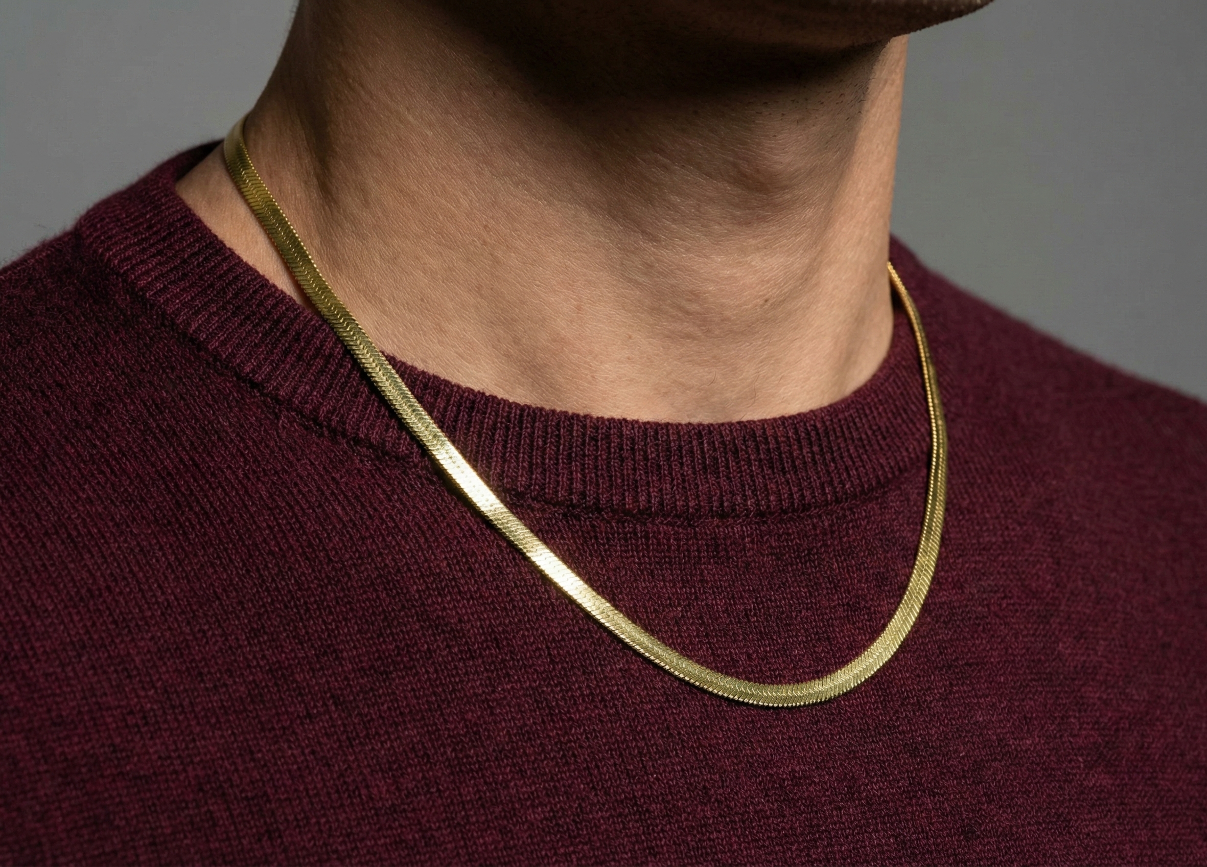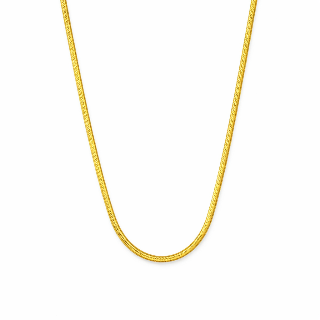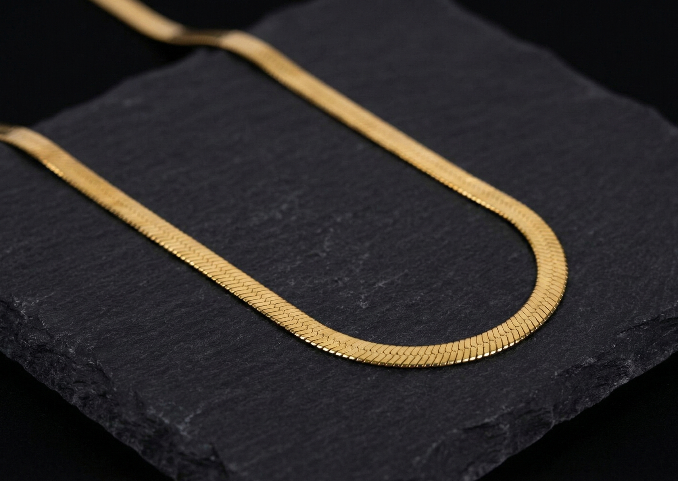 This classic gold herringbone chain necklace features a sleek, flat design that lies smoothly against the skin, creating a refined and elegant look. Crafted with a high-polish finish, it reflects light beautifully and adds a touch of sophistication to any outfit. Perfect for everyday wear or special occasions, this versatile chain can be worn on its own for a minimalist style or paired with a pendant for a layered look. Durable, stylish, and timeless.