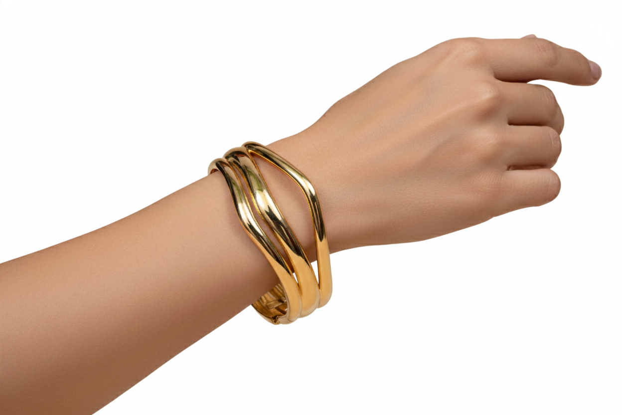 Add a touch of contemporary elegance to your look with this beautifully crafted twisted gold bracelet. Featuring smooth, flowing curves and a high-polish finish, the design creates a bold yet refined statement. Lightweight yet durable, it offers comfortable wear for both everyday use and special occasions. Its modern silhouette pairs effortlessly with western and ethnic outfits alike. Perfect for women who appreciate minimalist luxury, this bracelet also makes a stylish gift for birthdays, anniversaries, or festive celebrations.