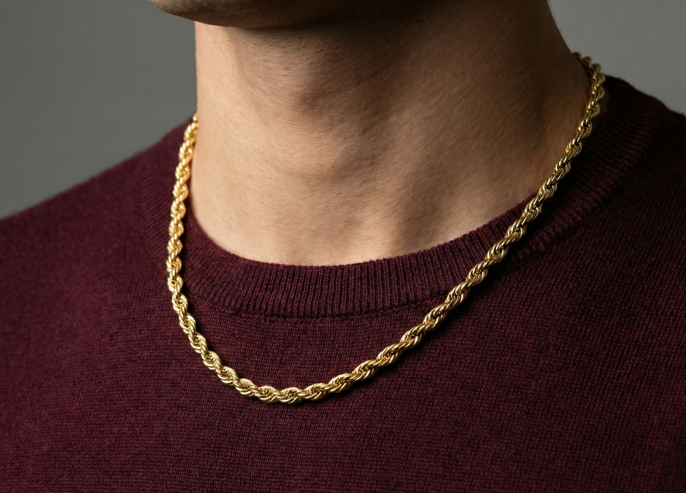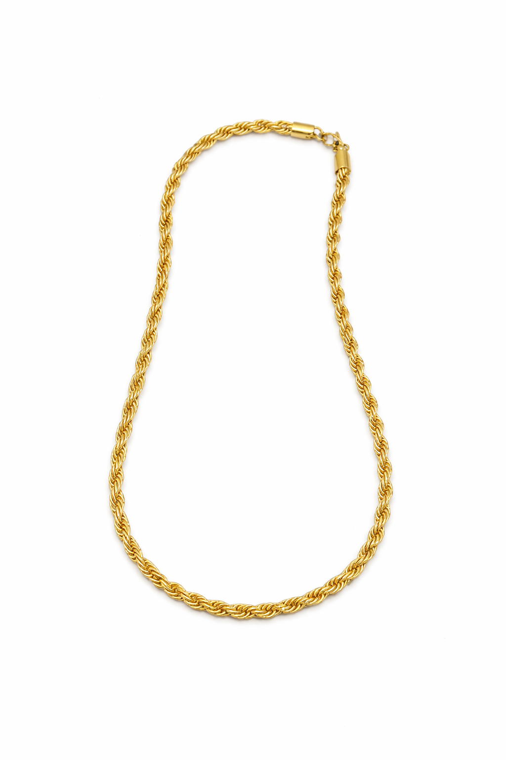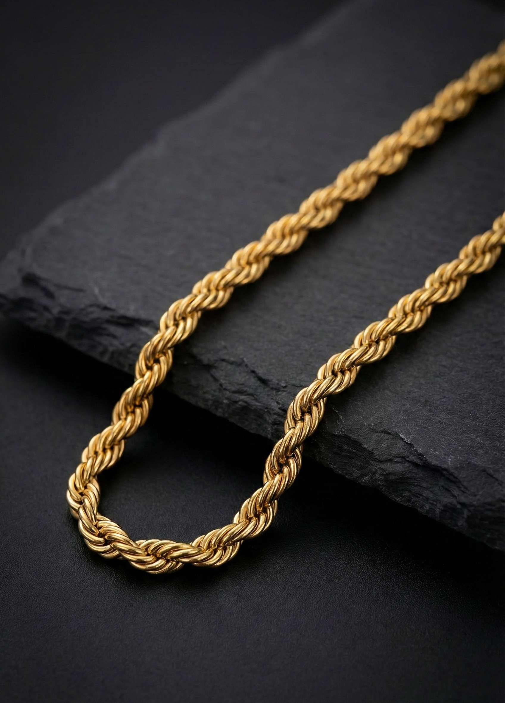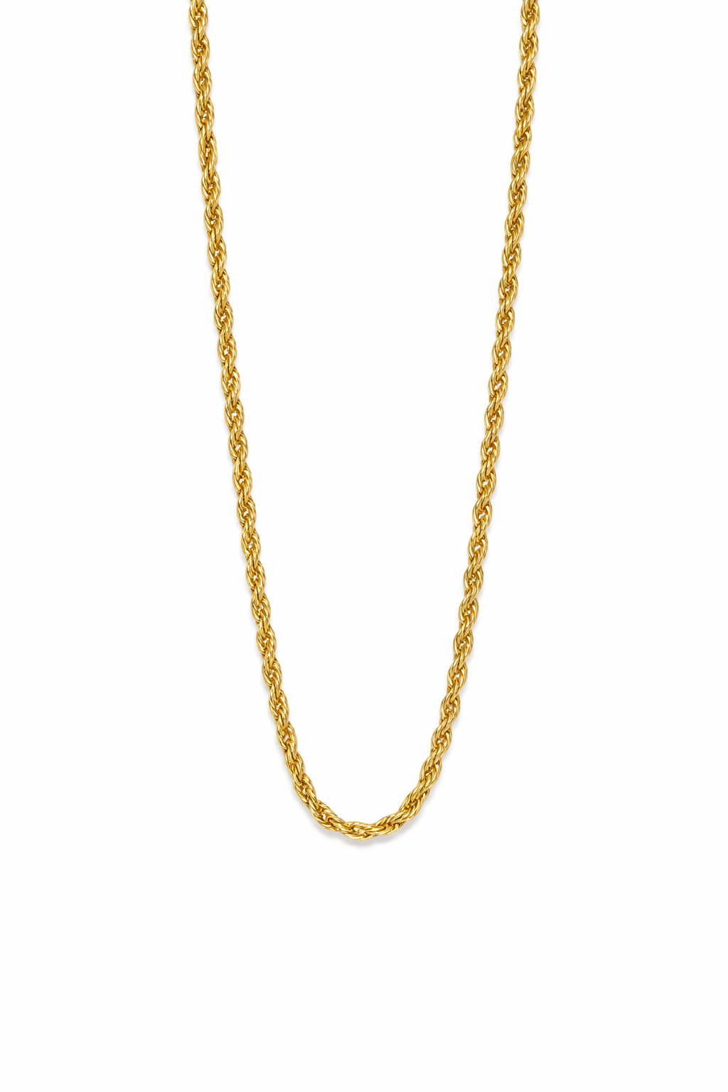 Add timeless elegance to your jewellery collection with this classic gold rope chain necklace. Crafted in a refined twisted rope design, it offers a rich shine and durable finish for everyday and occasion wear. Its versatile style pairs effortlessly with pendants or can be worn solo for a clean, sophisticated look. A perfect blend of tradition and modern luxury.