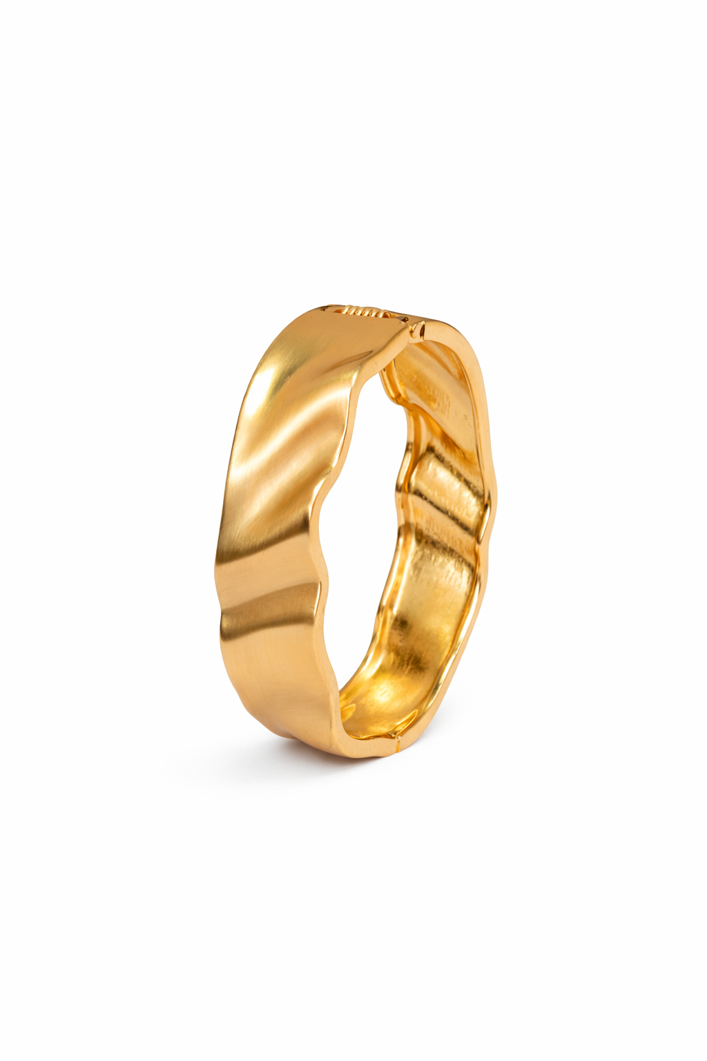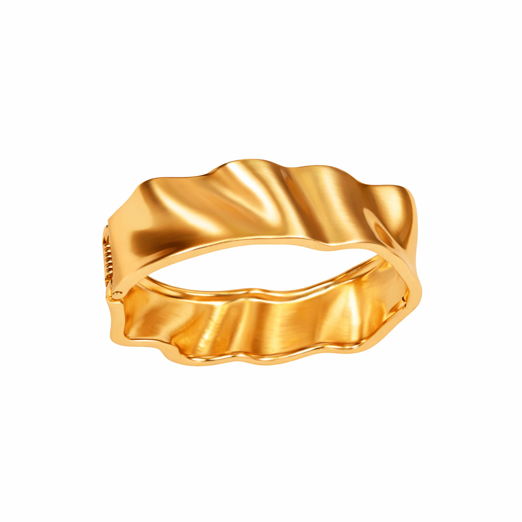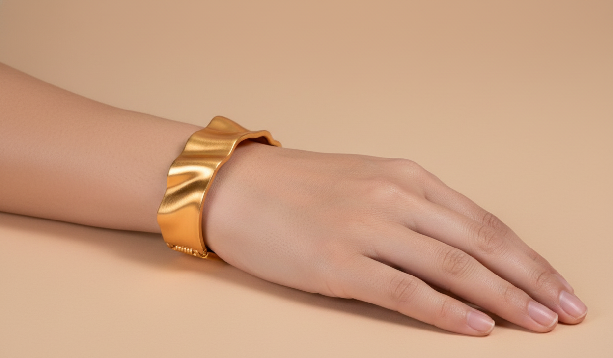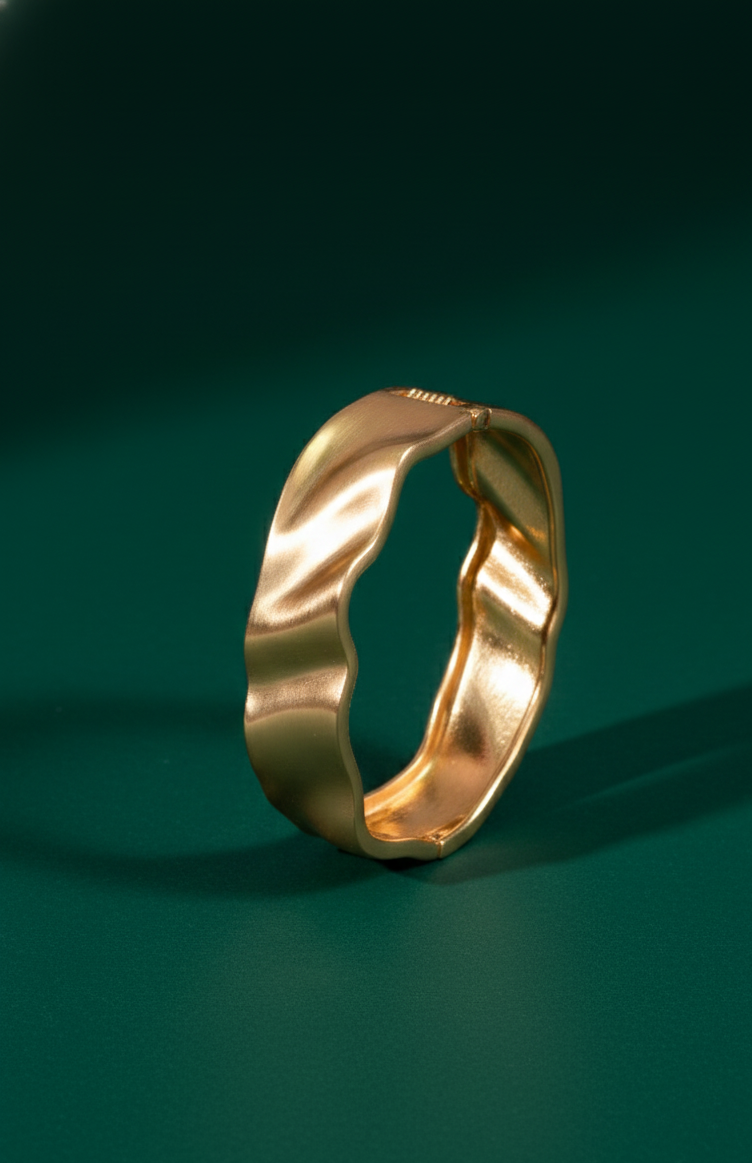Experience understated elegance with this sculpted gold bracelet, designed with smooth flowing curves and a refined high-polish finish. The minimalist silhouette offers a modern yet timeless appeal, making it perfect for everyday wear as well as special occasions. Crafted for durability and comfort, this bracelet sits gracefully on the wrist while adding a subtle touch of luxury. Its clean design pairs effortlessly with both western and traditional outfits, making it a versatile accessory and a thoughtful gift for women who appreciate sophisticated simplicity.